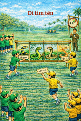 Cách chơi: Mỗi đội sẽ chọn vị trí lắp bảng tên rắn. Trên bảng sẽ có tên của các loài rắn. Mỗi đội sẽ được phát một tệp các bức tranh rắn. Nhiệm vụ của mỗi đội là ghép hình của loài rắn đó vào đúng bảng tên.